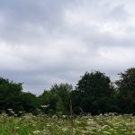 Goodnight friends! Occasional biting gusts but generally warm, even slightly sultry at times beneath a low grey felt blanket of clouds. The thirsty soil has already soaked up every drop of rain the last few days have given and brought forth masses of ragwort and clover, miles of winding bramble and bindweed that engulf railings and fences and saplings. Little trailing tracks and paths have been swallowed up by burgeoning grass.