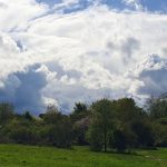 Goodnight friends! Hectic passing rain showers again, nothing settled, everything in a wildly swaying tension of warmth and cold, fair and heavy weather. At least one short squall of thickly splattering sleet like urgent fingers slapping at the windows, casting wide wet blurs across the glass. In between the scattered sweeping sunlight is beautiful, falling in golden flecks through the ragged domes of sycamore maples with their long hanging chandeliers of small green flowers.